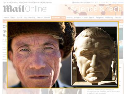 Chineses de olhos verdes seriam descendentes de romanos Moradores de uma remota vila no noroeste da China acreditaram serem especiais, já que apresentavam características incomuns para outras pessoas da região, como olhos verdes e cabelos claros. Agora um teste de DNA indica que eles são dois terços caucasianos e pesquisadores acreditam que eles são descendentes de uma legião romana que se perdeu há cerca de 2 mil anos durante uma guerra. As informações são do site do jornal Daily Mail. O professor Homer Dubs, de Oxford, já havia sugerido nos anos 50 que os moradores da vila de Liqian poderiam ser descendentes de um grupo de soldados que se perdeu após a derrota do romano Crasso para os partos, na região onde hoje fica o Irã, em 53 a.C..